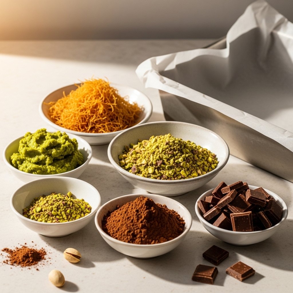 Many people expect the pistachio layer to behave like a frosting. It works more like a structured filling, so consistency matters. If the pistachio component runs too loose, it can smear into the ganache and create muddy layers. Another common issue comes from under-toasting kataifi, which leaves a soft, stringy texture instead of a crisp crunch.